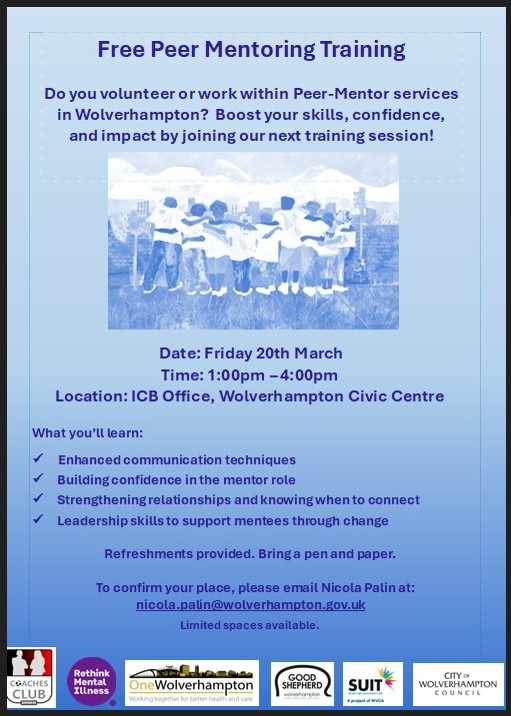 Great opportunity if interested or involved in mentoring! Email: nicola.palin@wolverhampton.gov.uk for more information or book your place.